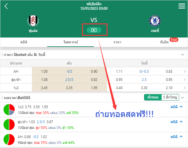 ได้เปรียบมาก อย่างไรก็ตาม ฟอร์มล่าสุดของพวกเขาก็น่ากังวลเลย เรทเปิดออกมาให้เชลซีต่อ 0.25 ลูกในเกมนี้ ให้สนับสนุนต่อพวกเขา หลังได้วิเคราะห์สภาพโดยรวมของทั้งสองทีม ก็คิดว่า ฟูแล่ม น่าเชื่อถือกว่าในเกมนี้
